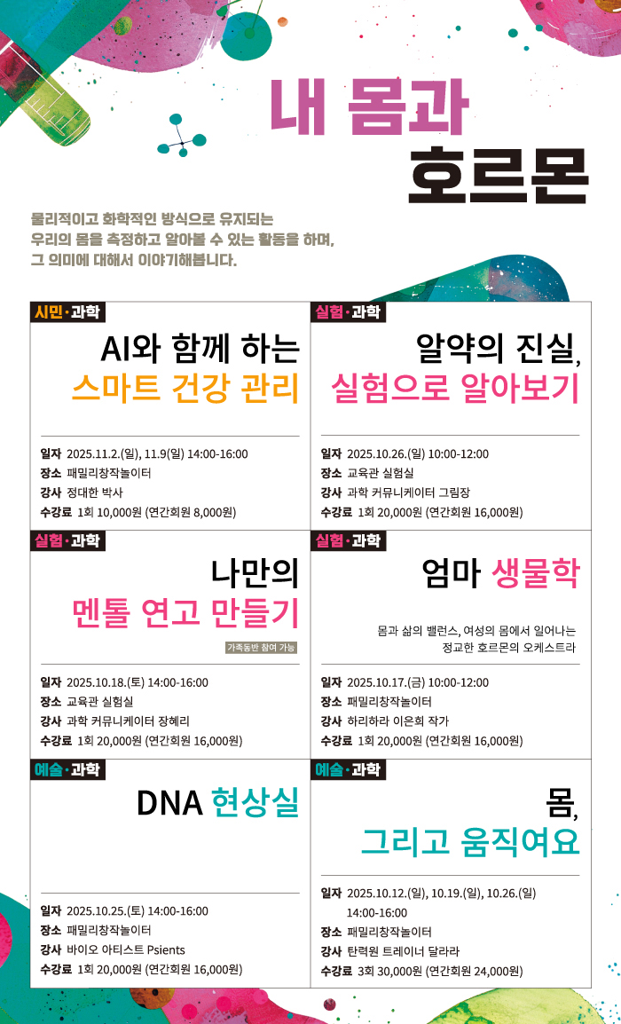 - 일자 : 2025.10.12.(일), 10.19.(일), 10.26.(일) 14:00-16:30 |